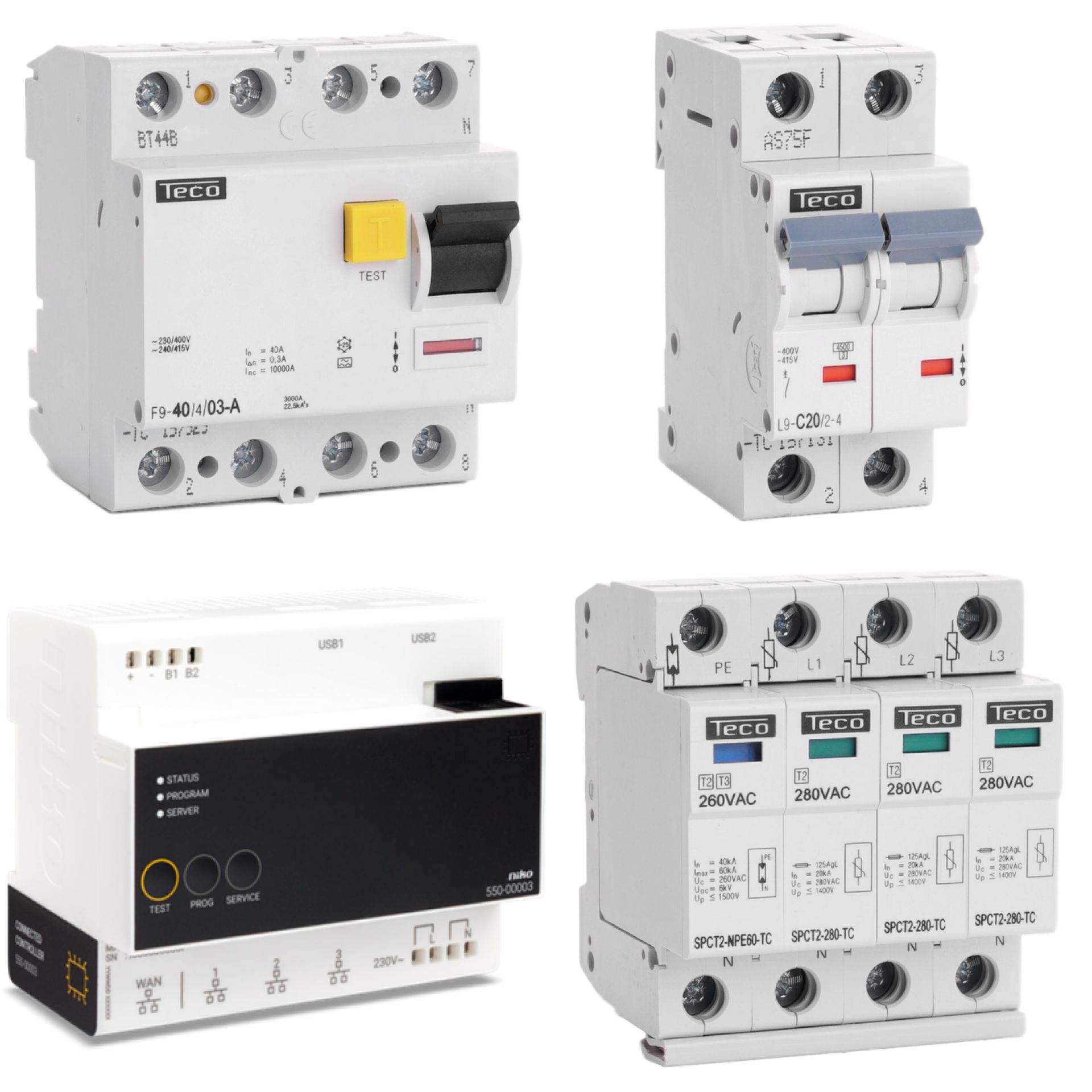 Voor de zekeringkast gaan we voor automaten en differentieels van Teco of Schneider.